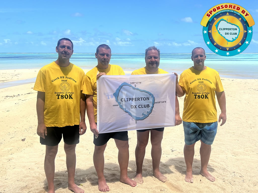 Le drapeau du Clipperton DX Club flotte en République de Palau à l’occasion de l’expédition T8OK.
